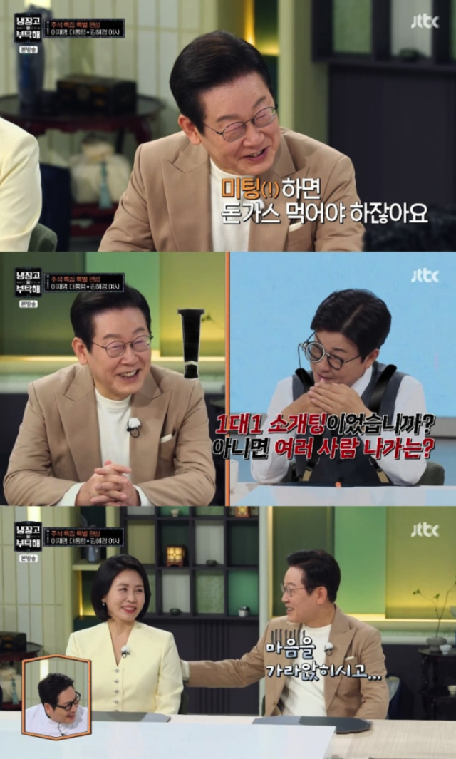 이재명 대통령은 김혜경 여사의 요리 중 두 번째로 프랑스 요리인 '라타투이'를 선택, 라타투이와 함께 양식에 눈을 떴다고 전했다. 이어 이재명 대통령은 처음 먹은 양식이 대학교 미팅 때 돈가스였다고 말했다. 그러자 진행자 김성주가 "1대1 소개팅이었냐"고 물어 김혜경 여사를 당황하게 만들기도 했다. 이에 이 대통령은 김혜경 여사를 다독였고, 결국 안정환은 "주책바가지"라고 말려 웃음을 안겼다. 이어 김혜경 여사는 "명절에 가정에 분란을 일으키시면 안 된다"고 해 웃음을 자아냈다.