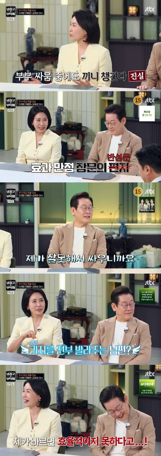 (엑스포츠뉴스 황수연 기자) 이재명 대통령 내외가 소탈한 부부싸움 에피소드를 공개했다.