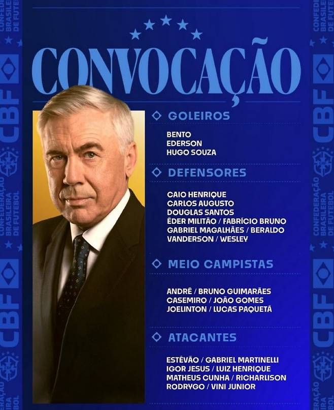카를로 안첼로티 감독이 이끄는 브라질은 한국전에 나설 26인 명단을 공개했다. 명단을 확인한 축구 팬들의 반응은 다소 아쉬움 쪽으로 기울었다. 예전만큼 무게감이 없다는 평가가 주를 이뤘다.