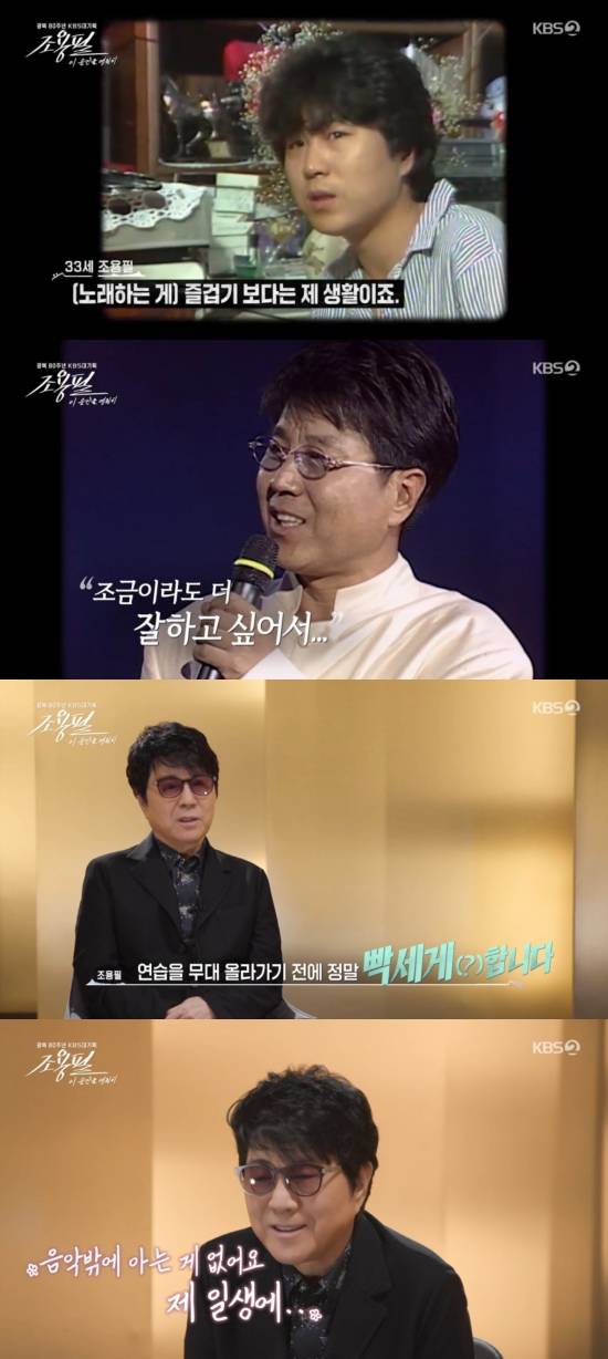 데뷔 30주년이었던 1998년 '이소라의 프로포즈'에 출연했을 당시에 조용필은 "여전히 노래 연습을 한다. 30년 차이지만 조금이라도 더 잘해볼까 나아질까 하는 것"이라고 답해 놀라움을 자아냈다.