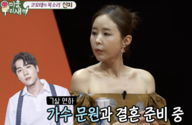 최근 SBS 예능 ‘미운우리새끼’에서 신지가 출연, 내년에 결혼을 앞두고 있지만 아직 상견례는 하지 않은 상황이 공개돼 눈길을 끌었다 신지는 결혼 발표 후의 심경과 예비 신랑 문원과의 관계를 솔직히 밝혔다. 당시 코요태 멤버들과의 상견례 영상이 화제가 되면서 일부 네티즌 사이에서는 논란이 일기도 했기 때문. 신지는 “결혼 발표 후 여러 이야기가 튀어나와 당황했다. 2년 넘게 교제한 커플이어서 문제는 없었다”며 현재까지 특별한 갈등 없이 지내고 있음을 전했다.