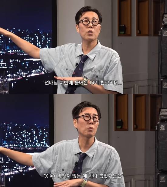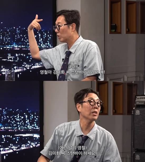 그는 "스태프가 '영철아, 김미화 씨 스탠바이하라고 해' 하면 저는 그걸 그대로 기억하고 있다가 '김미화 씨 스탠바이 하세요' 했다"며 "스태프가 '선배님 이번에 들어온 14기 친구인데 진짜 X XX 싸가지 없는 애 하나 뽑았거든요' 했었다"고 전해 웃음을 줬다.
