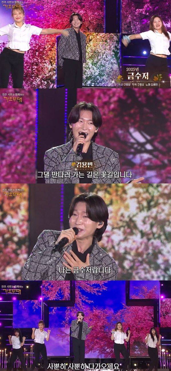 김용빈은 감성 짙은 보컬과 살랑살랑 스텝을 밟는 등 무대 매너를 선보이며 '가요무대' 하이라이트를 장식했다. 이를 본 관객은 환호하며 열렬히 박수를 보냈다.
