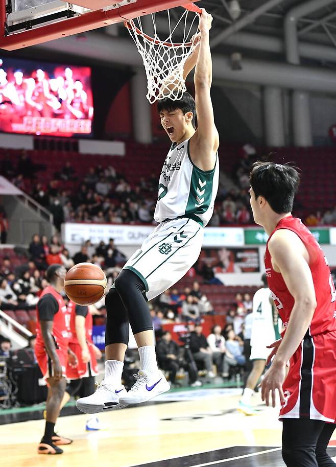 김보배는 지난 2024 KBL 신인 드래프트에서 전체 3순위로 원주 DB의 유니폼을 입었다. 17경기를 출전했고, 평균 출전 시간은 약 9분 14초였다. 그렇지만 큰 키와 운동 신경을 보여줬다.