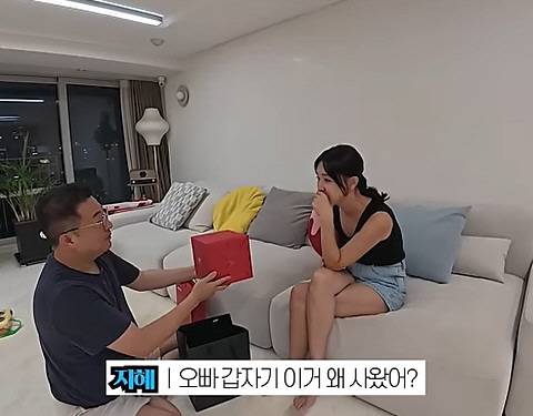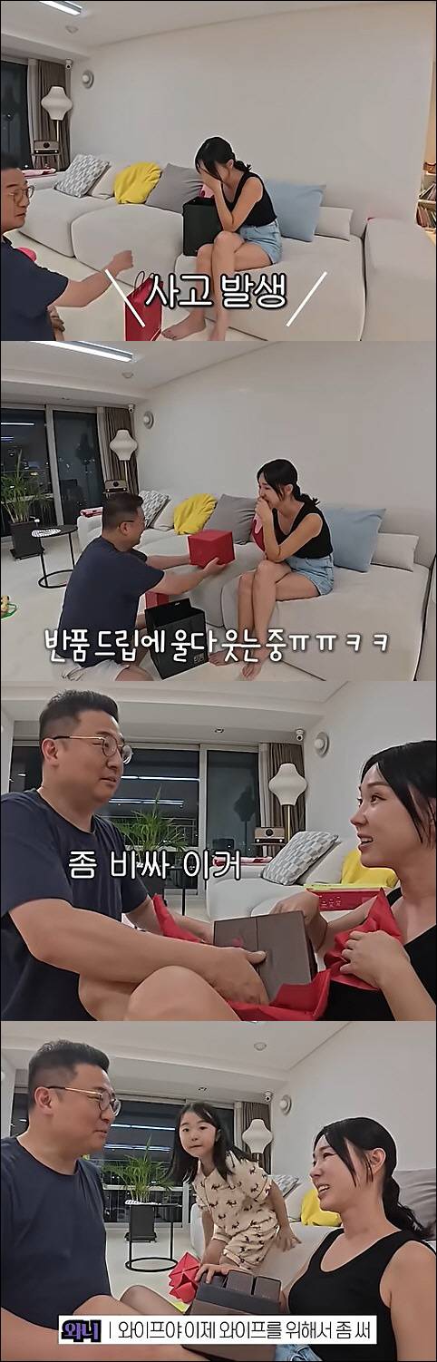 이지혜는 "오빠 갑자기 이거 왜 사왔어?"라고 물었고 문재완은 "우리 와이프 너무 힘든 거 같아서.반품할까?"라며 장난을 쳤다.