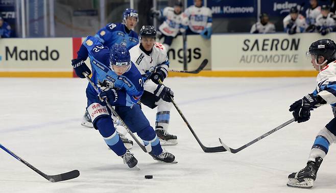 김건우가 2피리어드 12분 11초에 공격 지역 왼쪽으로부터 한 바퀴 돌아 나오며 멋진 리스트샷으로 골을 뽑아냈고, 18분 50초에는 김상욱이 내준 패스를 받은 이돈구가 공격 지역 중앙으로 파고 들어 날린 슈팅이 골 네트에 꽂혔습니다. 승기를 잡은 HL 안양은 2피리어드 종료 41초 전 한자와 치카라의 골까지 터지며 점수 차를 벌렸습니다.