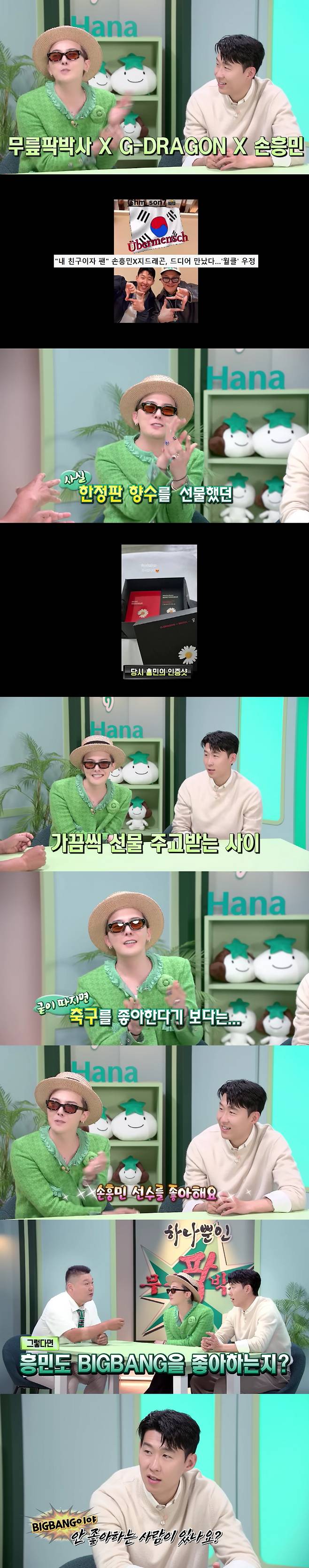이에 지드래곤은 "마음의 선물이죠, 뭐"라고 재치 있게 답했고, 손흥민 역시 "사소한 선물들을 주고받는 사이"라며 웃었다.