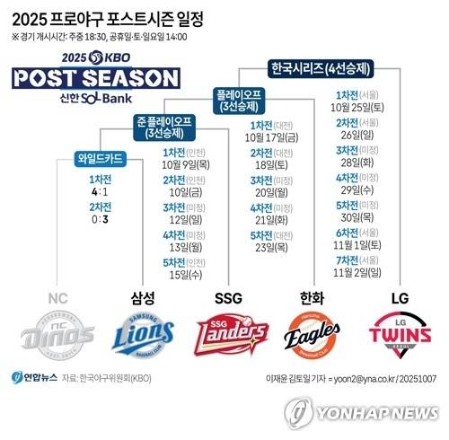 삼성과 정규시즌 3위 SSG 랜더스가 맞붙는 준플레이오프(5전3선승제) 1차전은 9일 열릴 예정이다.