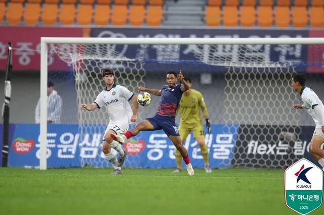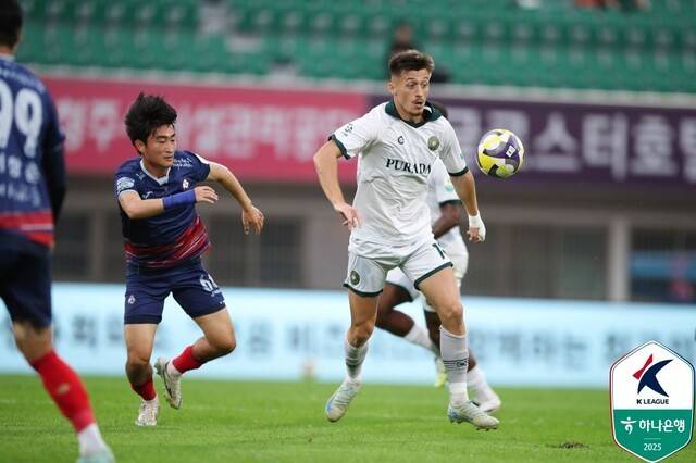 김포는 후반 15분 플라나의 땅볼 중거리 슈팅이 충북청주 오른쪽 골대를 맞히며 아쉬움을 삼켰다.