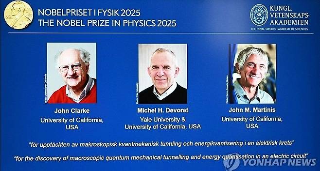 스웨덴 왕립과학원 노벨위원회는 "거시적 양자역학적 터널링과 전기회로에서의 에너지 양자화의 발견"의 공로를 인정해 이들에게 노벨 물리학상을 수여한다고 7일(현지시간) 발표했습니다.