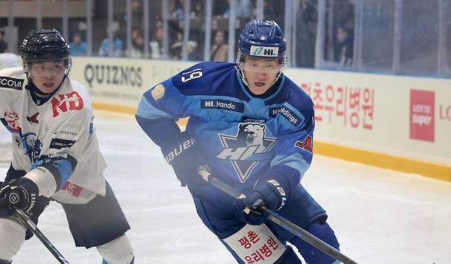 이날 HL 안양은 1피리어드 8분 38초 첫 파워플레이(상대 페널티로 인한 수적 우세) 기회에서 강민완이 선제골을 터트리며 앞서 나갔습니다.