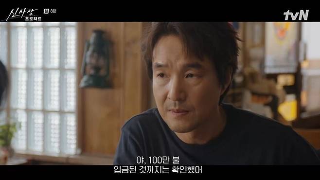 7일 방송된 tvN 월화드라마 '신사장 프로젝트' 8회에서는 신사장 신재이(한석규 분)가 윤동희(민성욱)의 계좌를 추적했다.
