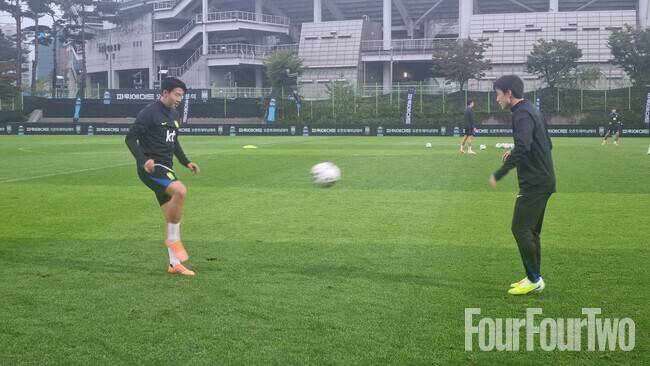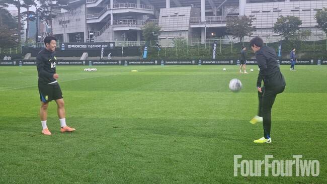 "아! 5년만 젊었어도..." 소속팀 일정으로 인해 하루 늦게 대표팀에 합류한 손흥민이 1992년생 동갑내기 '절친' 이재성과 볼을 주고받는 게임을 통해 몸을 풀었다.