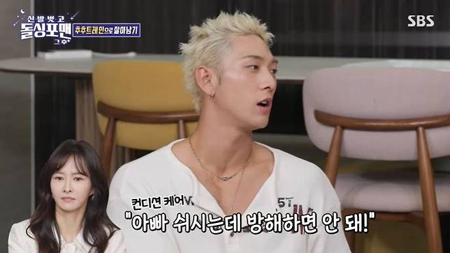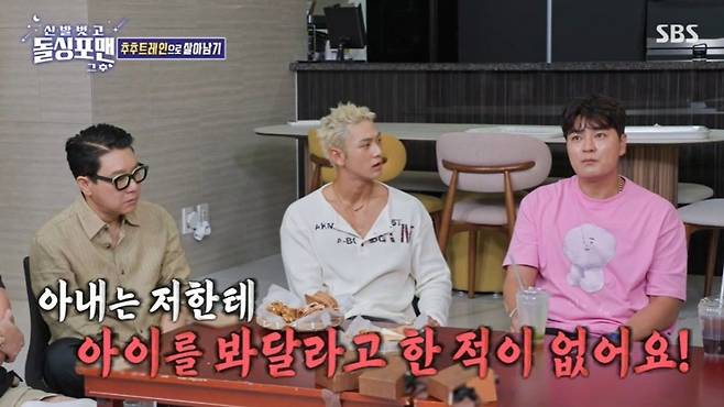 이를 듣던 김동현이 "형수님도 육아가 힘들 텐데, 집에 추신수 씨가 있을 때 잠깐 봐달라고 할 수도 있는데"라며 정리하려 했다. 이에 탁재훈은 "왜 MC처럼 질문하냐"라며 김동현을 경계했다.