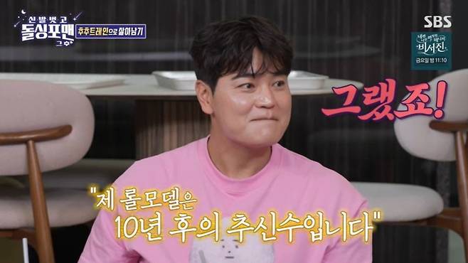 이날 이상민은 추신수를 '누적 연봉 1900억 원의 사나이'라고 소개하며 추신수의 기록을 읊었다. 김준호는 10년 전에 추신수를 만난 걸 언급하며 "지금도 너무 대단하지만, 그때 롤모델이 누구냐고 물어봤더니 '제 롤모델은 10년 후 추신수'라고 했다. 그걸 잊을 수 없다"라고 떠올렸다. 이에 추신수는 "전 아직도 진행형이라고 생각한다"라고 밝혔다.