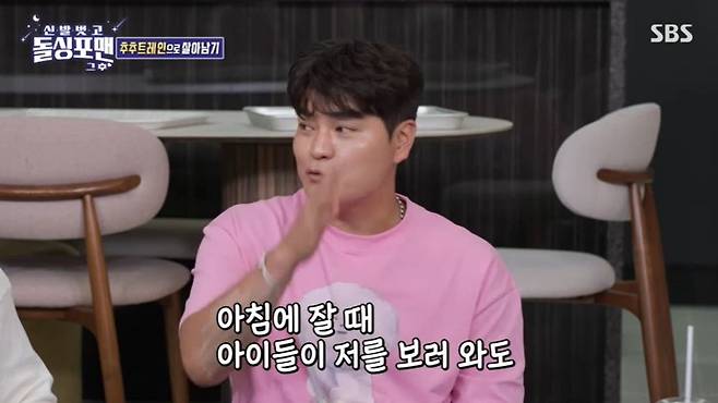 거기다 추신수는 "시합이 끝나도 바로 퇴근을 안 한다"라고 밝혔다. 그러자 주변에선 "아기들 잘 때 들어가는 거냐"라고 했다. 김준호는 "아내 하원미 씨는 언제 보냐"라고 궁금해했고, 김동현은 "최고의 야구선수도 힘들어하는 게 육아다"라고 흥분했다. 결국 추신수는 "애 보는 게 제일 힘들다"라고 인정하기도.