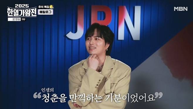 이는 일본 가수들도 마찬가지. 타케나카 유다이는 "청춘 같도 좋다. 누구와도 친해지지 않을 줄 알았는데 모두가 좋아졌다. 이런 말하기 부끄럽지만 인생의 청춘을 만끽하는 기분"이라며 '한일가왕전' 출연 소감을 전했다.