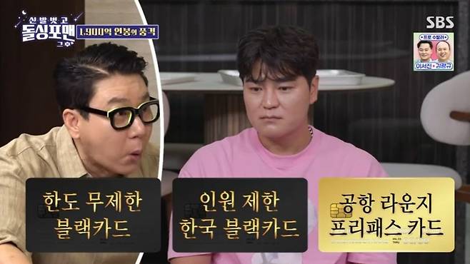 이상민은 하원미가 유튜브에서 공개한 한도 무제한 블랙카드, 인원 제한 한국 블랙 카드, 공항 라운지 프리패스 카드에 관해 언급했다. 이에 추신수는 "전 아내가 왜 그러는지 모르겠다. 유튜브를 위해서 너무 많은 걸 공개해서 제가 미치겠다"라고 토로했다.