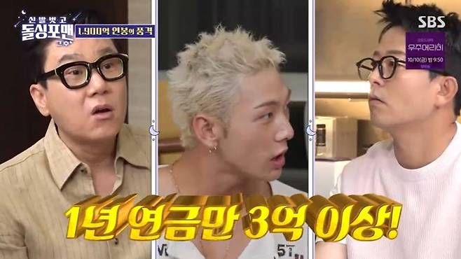 추신수는 메이저리그 연금에 관해 "연금이 나오는데, 지금은 안 받는다. 60세 이후에 받으면 1년에 2억 8천에 3억 정도 된다"라고 밝혀 모두를 놀라게 했다.