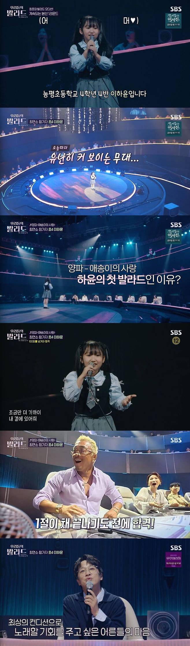7일 방송된 SBS '우리들의 발라드'에서는 초등학교 4학년 이하윤이 최연소 참가자로 등장했다.