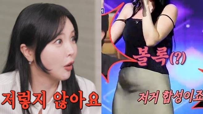 이날 이상민은 "홍진영 '직캠'이 난리"라고 말을 꺼냈다. 자료화면에는 무대에서 노래를 부르는 홍진영에 모습이 담겼다. 특히 배가 볼록하게 나와 시선을 모았다.