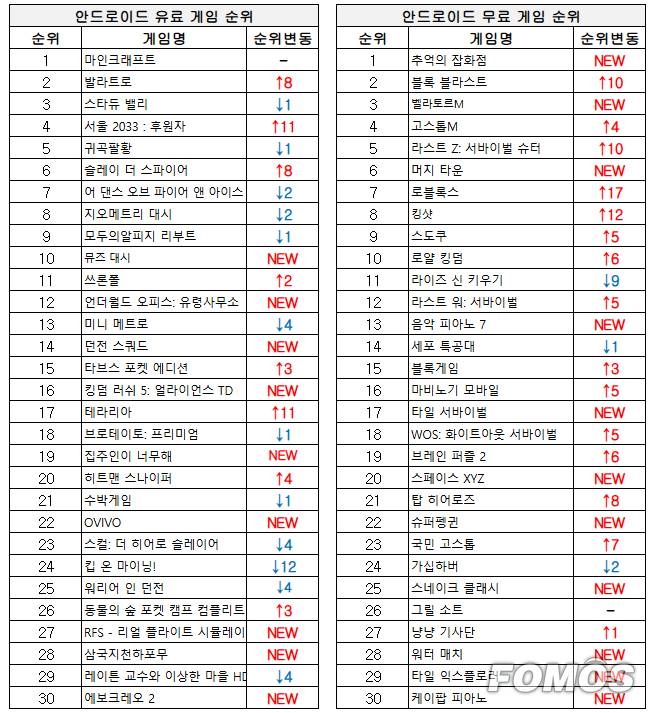 ■ 안드로이드 게임 순위