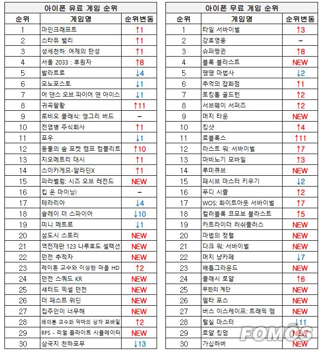 ■ 아이폰 게임 순위