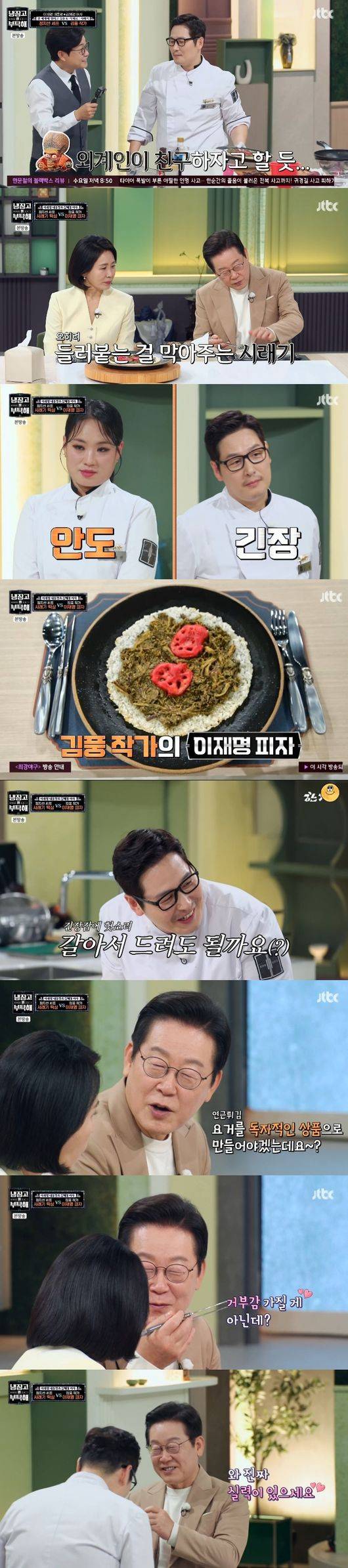 이재명 대통령의 찬사는 김풍의 요리에서도 이어졌다. 페퍼로니 대신 연근 튀김이 올라간 ‘이재명 피자’를 맛본 그는 “이건 독자적인 상품으로 만들어야 한다. 식용유가 많이 들어갔는데도 전혀 느끼하지 않다”며 놀라워했다.