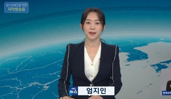 사진에는 앵커석에 앉아 뉴스를 진행 중인 엄지인의 모습이 담겼다.