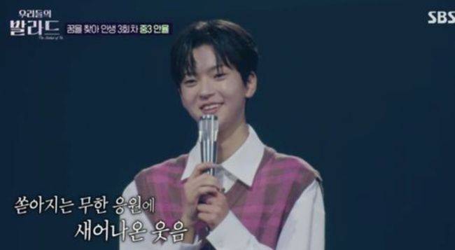 7일 방송된 SBS ‘우리들의 발라드’ 3회에서는 본선 1라운드 무대가 펼쳐졌다. 이날 중학교 3학년 참가자 안율이 등장하자마자 현장은 술렁였다. 훤칠한 키와 아이돌 못지않은 비주얼로 관객과 심사위원들의 시선을 단숨에 사로잡은 것.