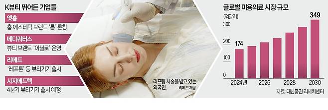 의료기기업체들이 너도나도 미용 쪽으로 사업 방향을 돌리는 이유는 이 시장이 커지고 있기 때문이다. 글로벌 미용 의료 시장은 올해 192억달러(약 27조원)에서 2030년 349억달러(약 50조원)로 5년 새 82% 성장할 전망이다.
