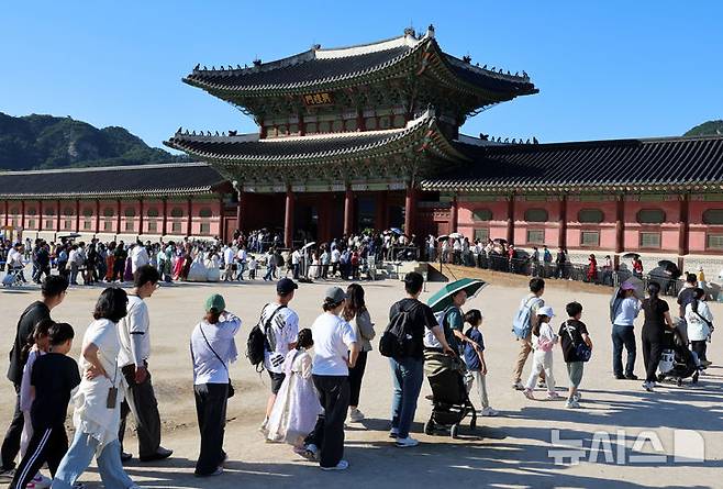 [서울=뉴시스] 조성우 기자 = 추석 연휴 엿새째인 8일 오후 서울 종로구 경복궁이 시민들과 내외국인 관광객들로 북적이고 있다. 2025.10.08. xconfind@newsis.com