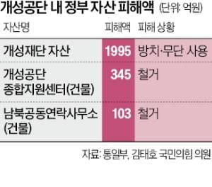 자산 종류별로는 건물·도로 등 기반 시설 1476억4000만원, 차량·비품 등 지원 시설 518억3000만원 등 우리 정부 자산이 개성공단에 남겨진 채 사실상 북한에 넘어간 것으로 파악됐다.