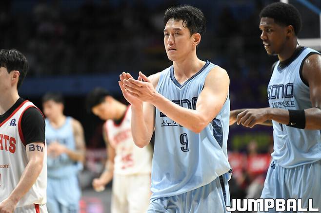 소노의 2연패 기간 3점슛 성공률은 10.6%(7/66)에 불과했다. 야투 성공률(31.6%) 역시 최하위. 단 2경기에 불과했지만, 찬스에서 던진 슛이 번번이 림을 외면하면 선수가 느끼는 심리적 압박감은 점점 커지기 마련이다. 선수단의 마음고생을 덜어줘야 하는 주장 정희재의 마음 역시 편할 리 없었다.