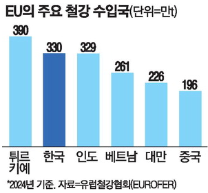 한국산 철강 제품의 대EU 수출액은 지난해 6조3000억원에 이른다.