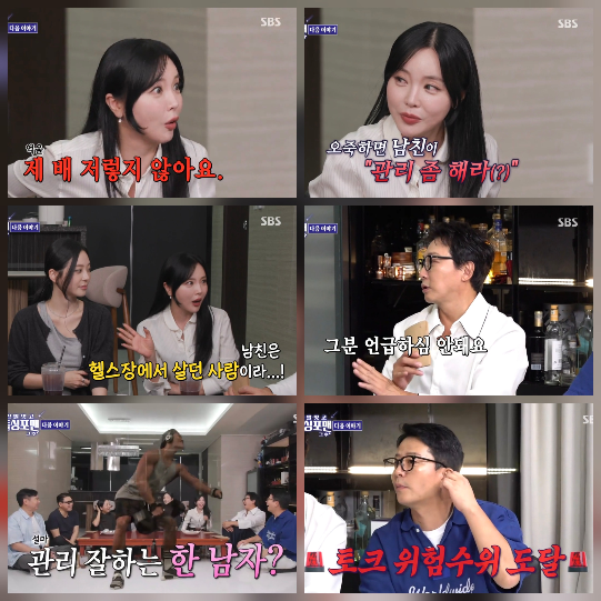 이상민은 “남자친구가 관리 좀 하라고 하지 않냐”고 묻자, 홍진영은 “그 사람은 헬스장에서 살아요. 운동 중독 수준이에요”라고 답했다.