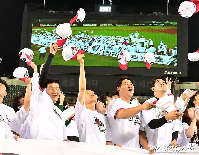 LG는 지난 1일 정규시즌 최종전이었던 잠실 NC 다이노스전에서 3-7로 패했다. 그러나 같은 날 인천 경기에서 2위 한화 이글스가 SSG 랜더스에 역전 끝내기패를 당하면서 자동으로 LG의 정규시즌 우승이 확정됐다.
