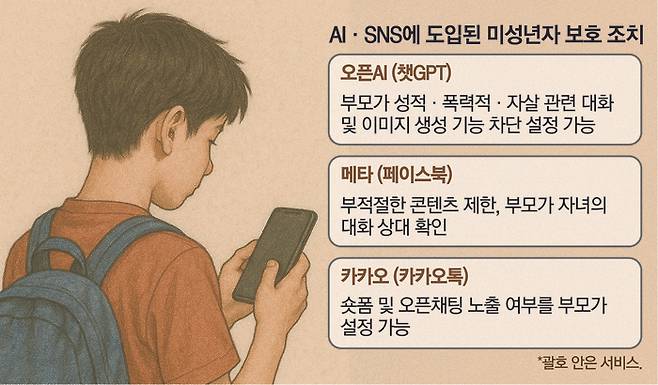 최근 챗GPT 개발사인 오픈AI를 필두로 주요 인공지능(AI) 및 사회관계망서비스(SNS) 기업들이 미성년자에게 콘텐츠 일부를 차단하는 기능을 잇달아 도입하고 있다. 지난해 챗GPT가 미성년자에게 자살 방법을 알려준 탓에 실제 자살까지 이어지는 극단적인 사례가 발생했고 과도한 SNS 노출에 따른 부작용에 대한 비판이 거듭되자 아예 특정 연령대 이하에게 노출할 수 있는 콘텐츠 수위를 그 부모에게 직접 결정할 수 있도록 권한을 부여하는 것이 특징이다.