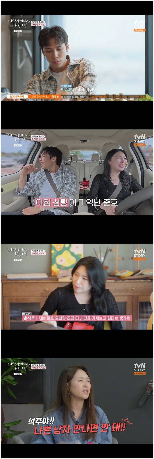 8일 방영한 tvN STORY, 티캐스트 E 채널 ‘내 새끼의 연애’에서는 마지막 데이트가 이뤄졌다. 홍석주는 안유성 아들과 박호산 아들 중 하나를 선택해야 했다. 홍석주는 고심 끝에 박호산 아들 준호를 선택했다. 홍석주는 “저는 준호 오빠랑 시간을 더 가져보고 싶다는 생각을 한 상태인데 선준이가 마음에 걸렸다. 너무 곤란했다”라며 끝까지 고심했던 티를 냈다.
