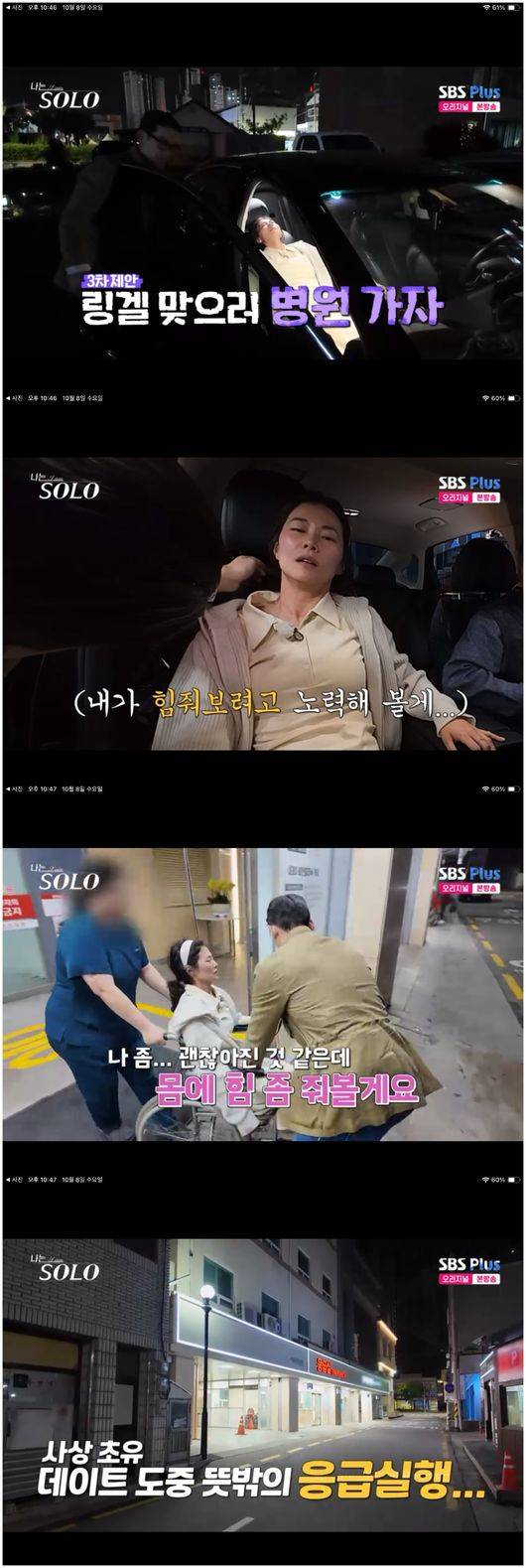 8일 방영된 SBS 예능 ‘나는 SOLO - 나는 솔로’(이하 ‘나는 솔로’)에서는 사상 최초 데이트 중 응급실로 향한 커플이 탄생했다. 광수와 영숙은 데이트로 선술집을 골랐는데 광수는 영숙의 주량을 모른 상황이었다. 영숙의 주량은 맥주 1캔이었다.