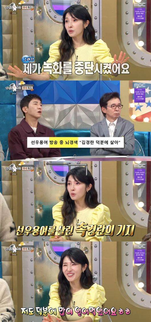 '라디오스타' 김경란이 선우용여 뇌경색 감지 후 녹화를 중단한 일화를 전했다.