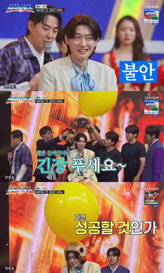 김용빈의 활약은 '일본에서 온 엉덩이 바람남' 무대에서도 빛을 발휘했다. 해당 기인은 엉덩이 바람을 자유자재로 사용했다. 이에 녹화 당시 생일을 앞두고 있던 김용빈이 무대 위에 차출됐다.