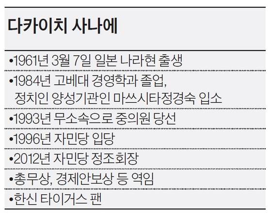 일본 첫 여성 총리가 될 다카이치 사나에(高市早苗·64) 신임 자민당 총재는 야스쿠니 신사 참배와 함께 “장관급을 다케시마(竹島)의 날 행사에 보내야 한다”는 발언을 서슴지 않는 극우 성향으로 한국에 알려져 있다. 그러나 사석에선 “불고기와 K팝을 좋아한다”고 털어놓는다고 한다. 좋아하는 음식은 고로케, 취미는 스쿠버다이빙과 악기 연주. 존경하는 인물은 마쓰시타 고노스케(松下幸之助)와 부모님을 꼽는다. 출마 기자회견에선 “회식에 참석을 잘 안 한다”는 점을 공개하기도 했다. 기존 정치 문법과는 다른 다카이치만의 문법이다.