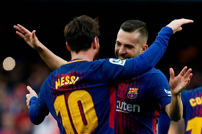 2007년 발렌시아(스페인)에서 프로에 데뷔한 알바는 2012년 바르셀로나로 이적, 메시와 동료의 연을 맺었다. 이후 2021년까지 호흡을 맞췄다. 바르셀로나에서 둘은 통산 345경기 동안 함께 뛰면서 34골을 합작했다. 이 기간 스페인 라리가 5회, 코파 델 레이(스페인 국왕컵) 5회, 유럽축구연맹(UEFA) 챔피언스리그(UCL) 1회 등 함께 우승을 일궜다.