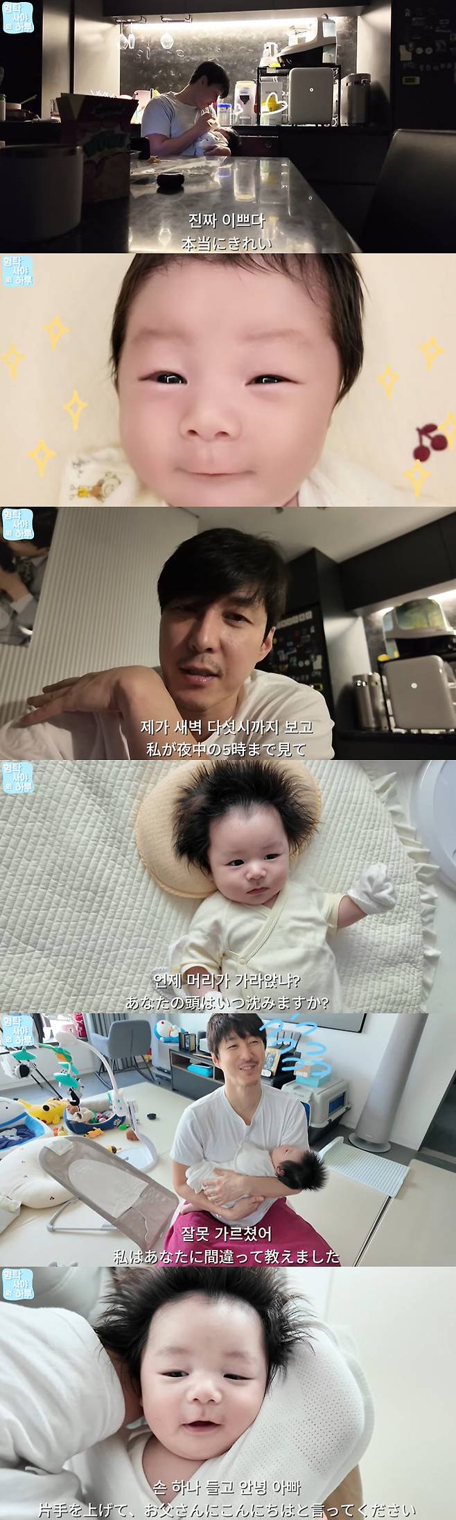 영상에서 심형탁은 생후 14일이 된 아들 하루 군을 새벽에 열심히 케어하고 있는 모습.