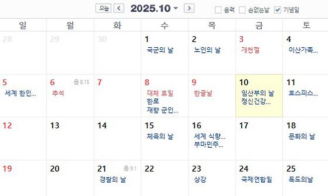 이번 연휴도 그랬다. 3일 개천절, 4일 토요일, 5~7일 추석 연휴, 8일 대체공휴일, 9일 한글날이 이어졌다. 여기에 10일이 임시공휴일로 지정됐다면 11~12일 주말까지 더해 총 10일의 연휴가 가능해지는 구조였다.