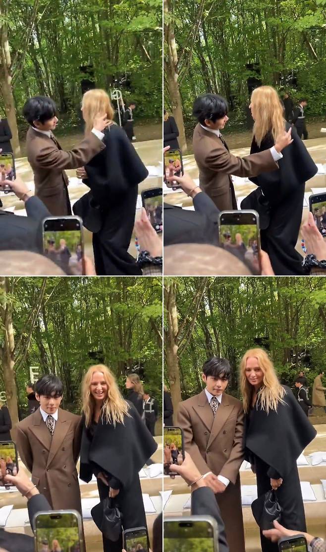 패션쇼장 안에서도 뷔의 존재감은 단연 돋보였다. 셀린느 CEO 세브린 메를, 디올 CEO 델핀 아르노, 그리고 배우 우마 서먼과 나란히 프론트 로우를 채운 뷔는 세계 럭셔리 패션의 ‘황태자’다운 위상을 입증했다.