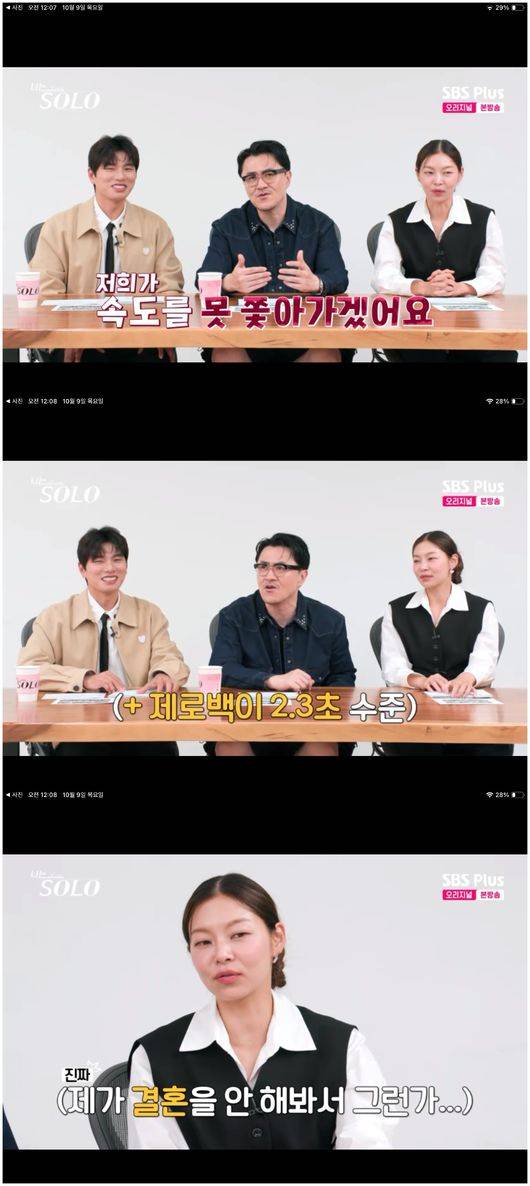 데프콘은 “영숙은 응급실에 데려다 준 광수보다 마성의 남자 영수에게 마음이 기울었다”라면서 “희한하게 돌싱 기수는 저희가 못 쫓아가겠다. 제로백이 0.23초다”라고 말했고, 송해나는 “내가 결혼을 안 해봐서 그런가?”라며 도통 이해할 수 없다는 표정을 지었다./osen_jin0310@osen.co.kr