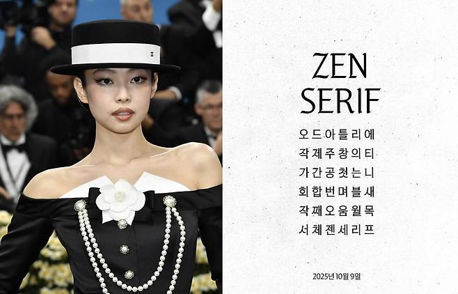 소속사 측은 ‘젠 세리프’가 전통적인 한글의 멋과 현대적인 디자인 감각을 조화시킨 폰트라고 밝혔습니다. 장식을 줄이고 부드러운 곡선을 더해 깔끔하면서도 따뜻한 느낌을 주며, 서양의 고전 서체인 블랙레터에서 영감을 받아 한글과 독특하게 결합했습니다.