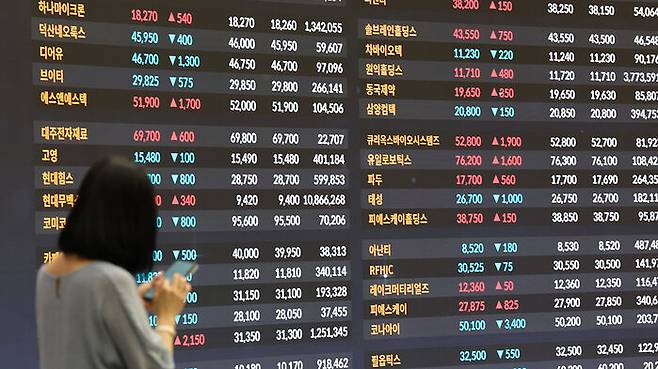 ▲ 서울 여의도 KRX 한국거래소 홍보관 내 주식 시세판